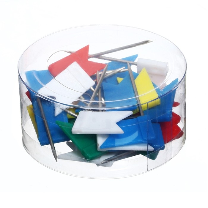 Булавки-флажки предназначены для создания отметок на картах, графиках и для крепления информации к пробковым доскам. Флажки пластиковые, разноцветные.