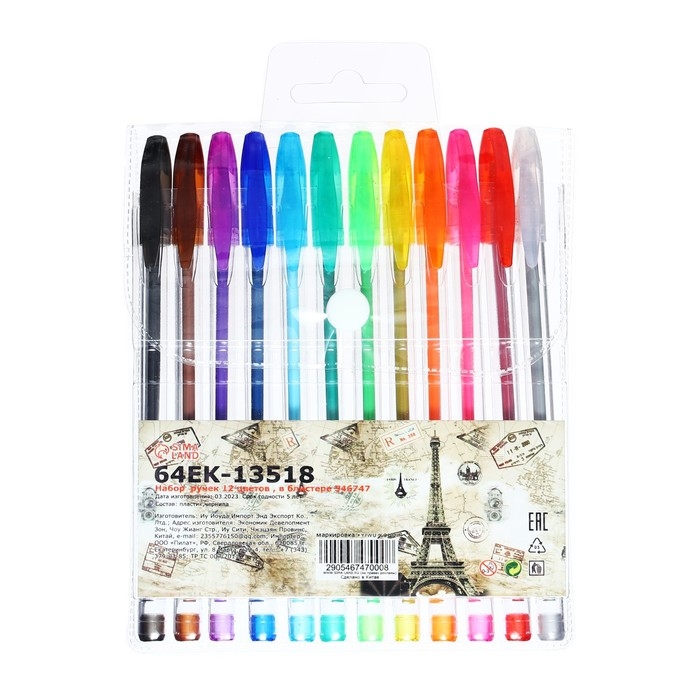 Набор гелевых ручек, 6 цветов, металлик, с блёстками, в блистере