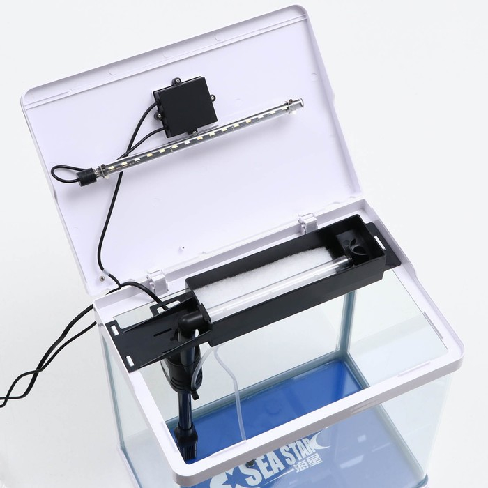 Аквариум SeaStar HX-390F в комплекте: LED-лампа 3х цветная, 7 режимов, фильтр, 30 л, белый