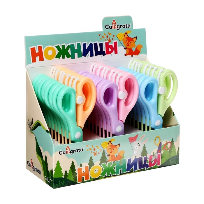 Ножницы канцелярские 14 см Calligrata, пластиковая ручка, резиновые вставки, микс