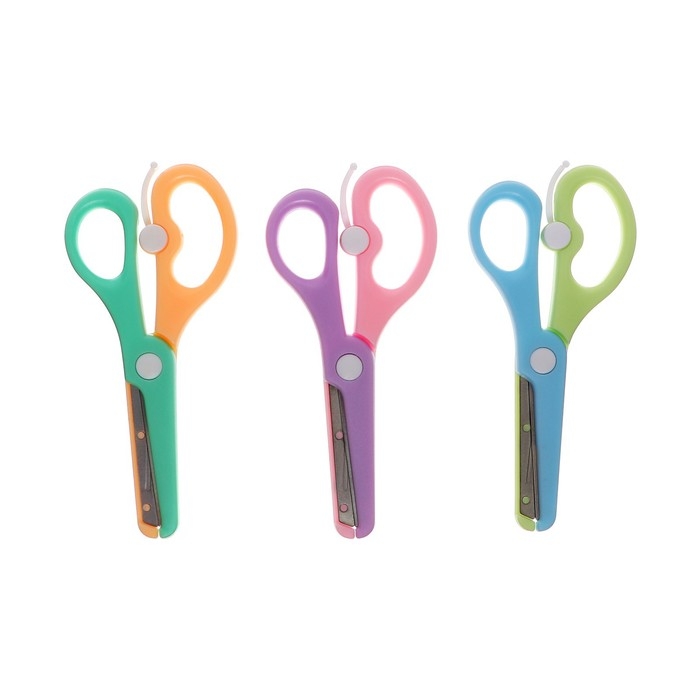 Ножницы пластиковые 13 см, фиксатор, с металлическими лезвиями и закруглёнными концами, безопасные, МИКС