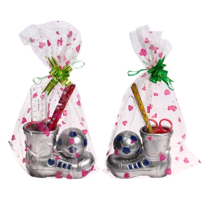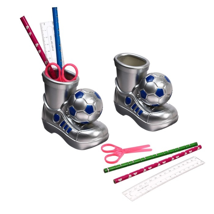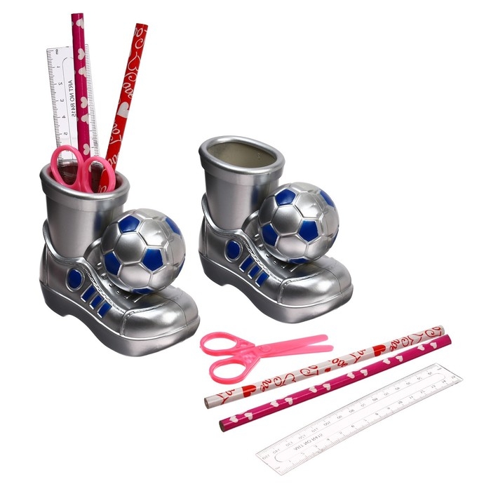 Настольный набор детский, "Ботинок с мячом" из 5 предметов: подставка, ножницы, линейка, 2 карандаша, МИКС