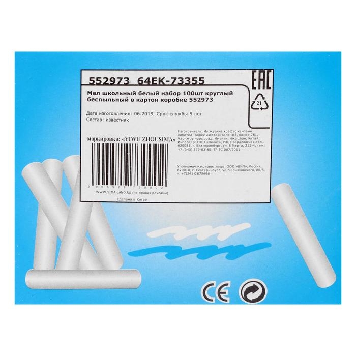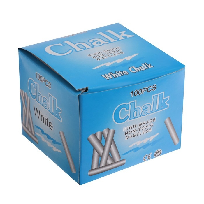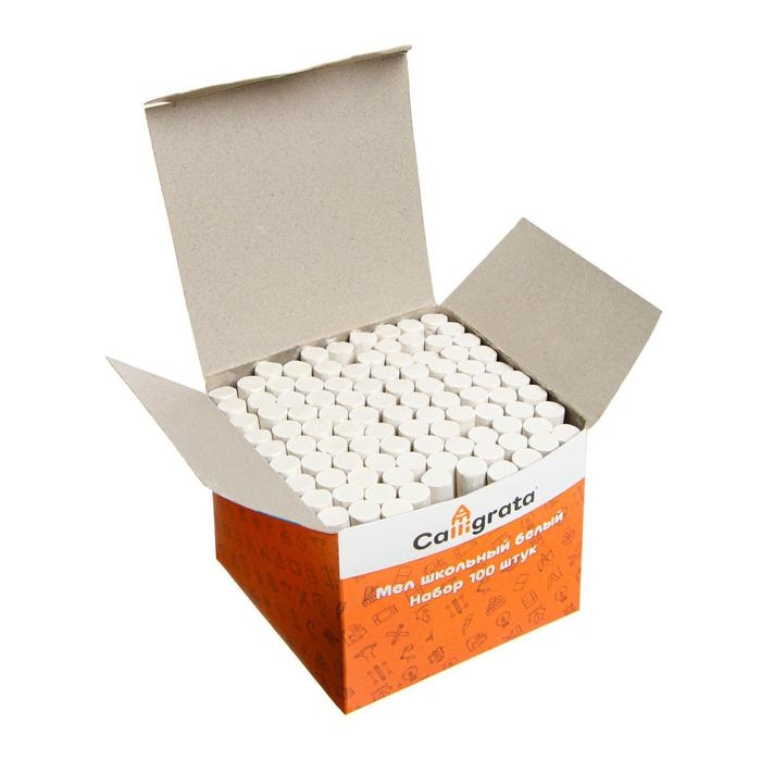 Мел школьный, белый, набор 100 штук, круглый, беспыльный, в картонной коробке