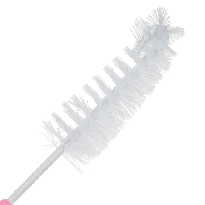 Данная модель легко и быстро устранит загрязнения. Щетина изготовлена из прочного и долговечного материала — нейлона. Покрутите ручку, чтобы смыть налёт со дна и выступов, и удалите остатки пищи, совершая вертикальные движения. На конце ручки находится маленький ёршик для мытья сосок.