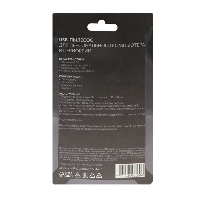 USB Пылесос Luazon MR-01, для ПК, с насадками, USB, зелёный