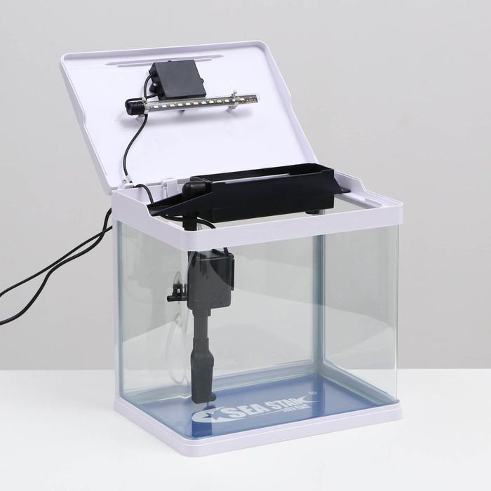 Аквариум SeaStar HX-318F в комплекте: LED-лампа 7 режимов, фильтр, 18 л, белый