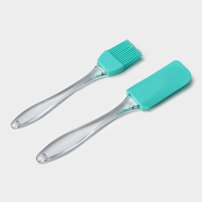 Набор для выпечки Доляна «Лёд», 2 предмета: лопатка 18,5 см, кисть 16,5 см, цвет бирюзовый