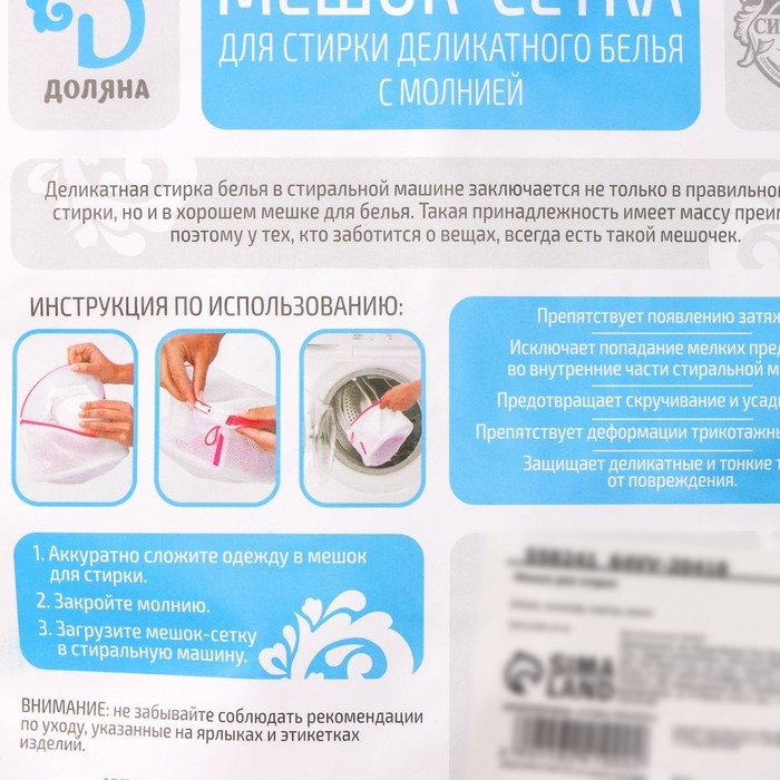 - исключает попадание мелких вещей (застёжек, бусин или пуговиц) во внутренние части стиральных машин;