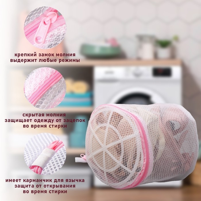 Мешок для стирки бюстгальтеров Доляна, 16×16×16 см, трёхслойный, крупная сетка, белый