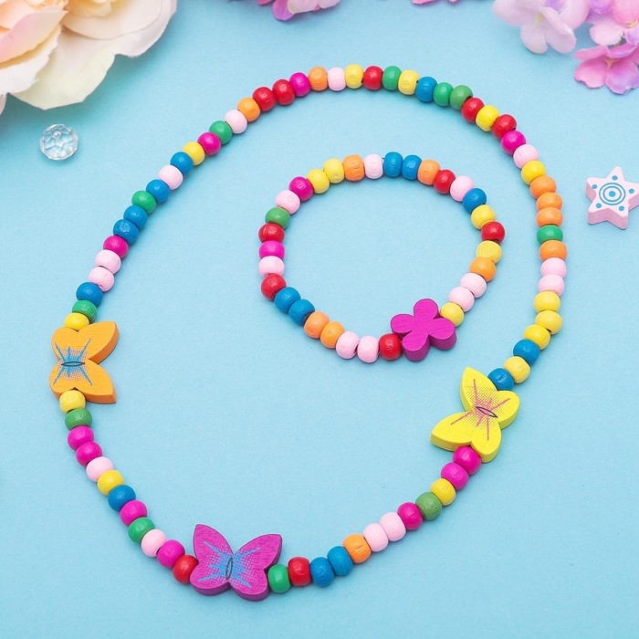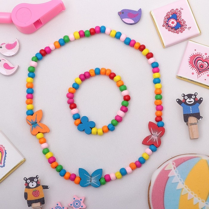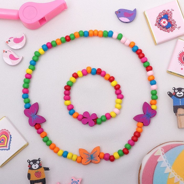 Набор детский «Выбражулька» 2 предмета: бусы, браслет, бабочки нежность, цвет бело-розовый