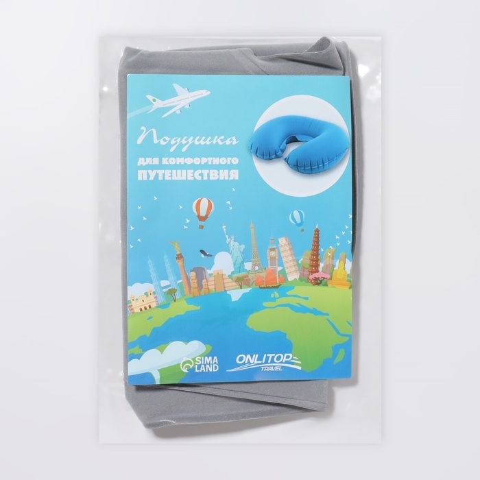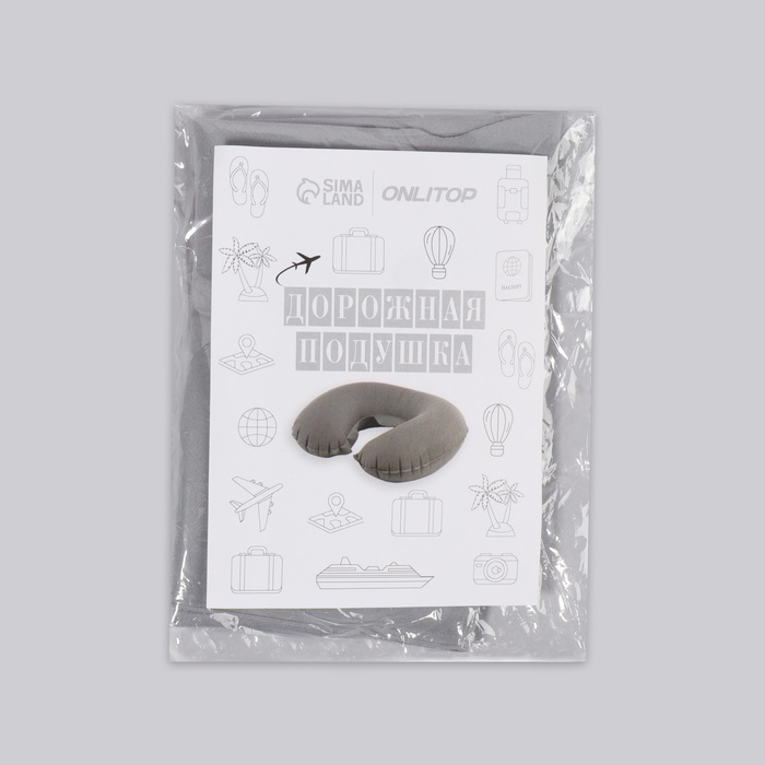 Подушка для шеи дорожная, надувная, 38 × 24 см, цвет серый