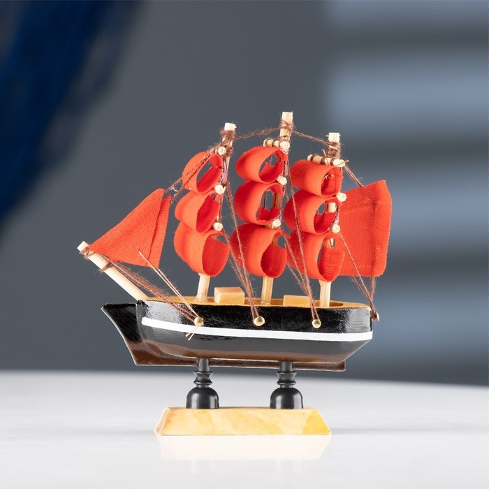 Корабль сувенирный малый «Марианна», борта с белой полосой, паруса алые, 3×10×10 см принесет удачу своему обладателю