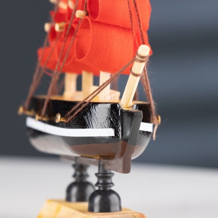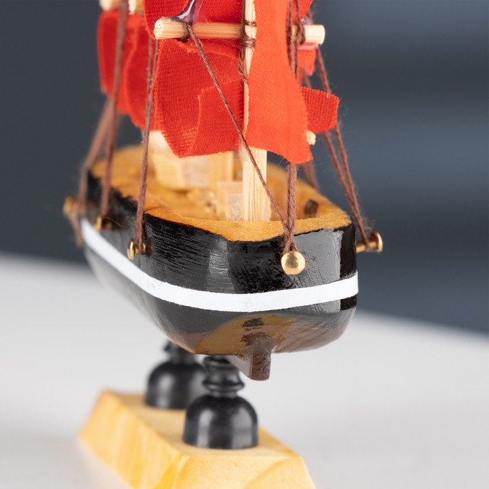 Корабль сувенирный малый «Марианна», борта с белой полосой, паруса алые, 3×10×10 см