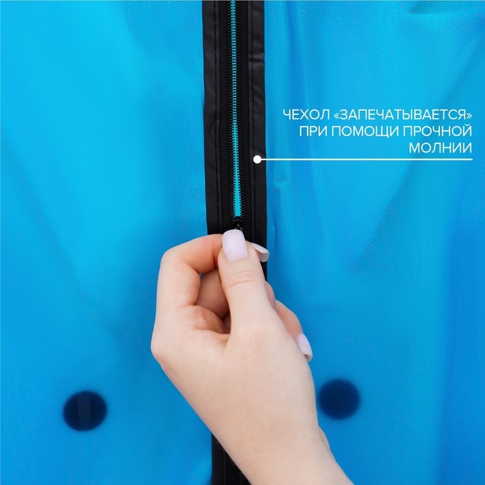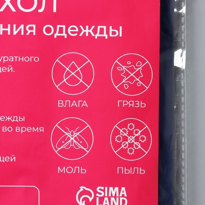 - Чехол надёжно защищает одежду от пыли и грязи, от насекомых, механических повреждений или от возможного выцветания.