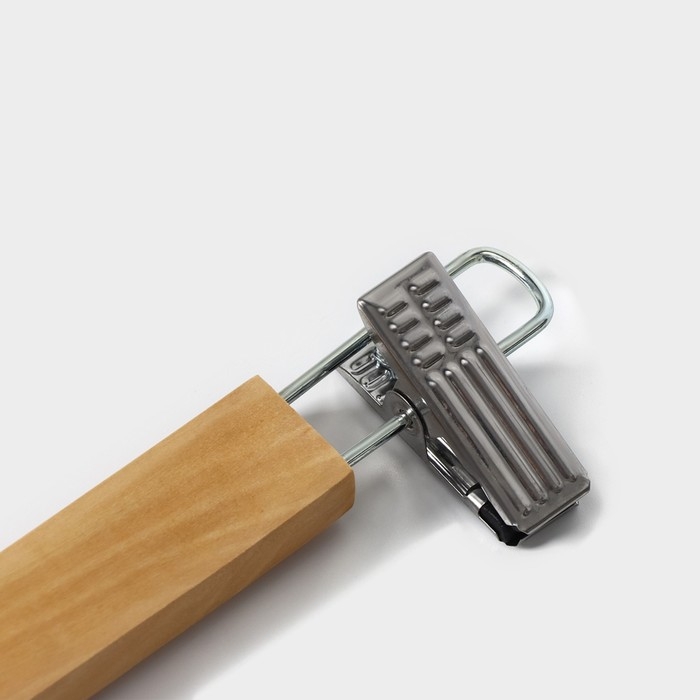 Плечики - вешалки для брюк и юбок Доляна, 45×27 см, 3 шт, с зажимами, деревянные сорт С, широкие плечики