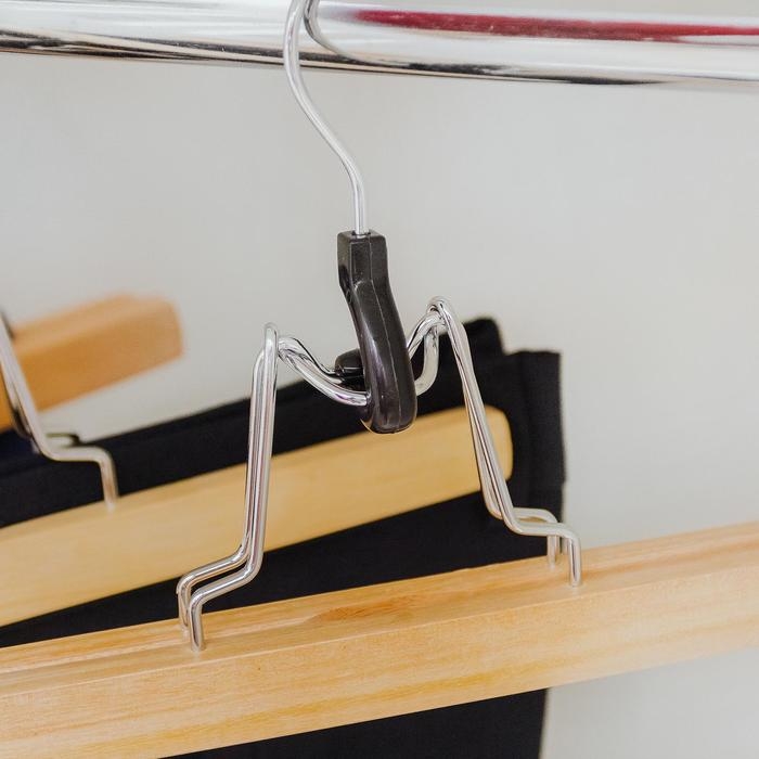 Проблема хранения юбок и брюк решена! Больше никаких заломов на ткани и спешной глажки с утра – достаточно воспользоваться удобной вешалкой, чтобы сохранить аккуратный вид вещей, а заодно обеспечить порядок в шкафу и оптимизировать пространство внутри него.