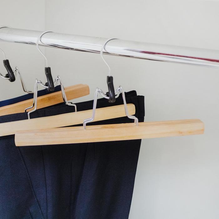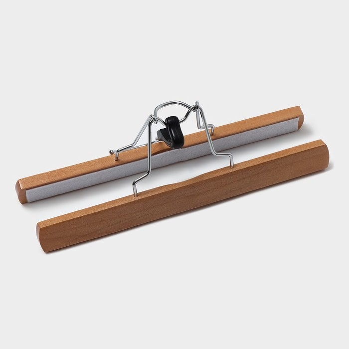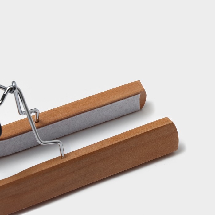 Плечики - вешалки для брюк и юбок Доляна, 45×27 см, 3 шт, с зажимами, деревянные сорт С, широкие плечики