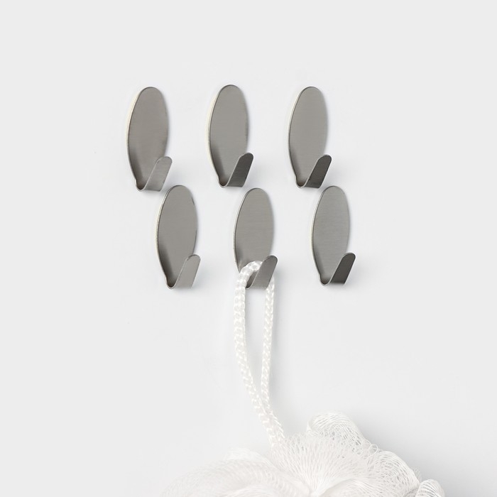 Крючки самоклеящиеся SAVANNA «Овал», 6 шт, металл, 3,3×1,5×1,5 см