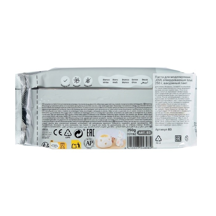 Масса для лепки JOVI, самозатвердевающая, полимерная, 250 г, белая