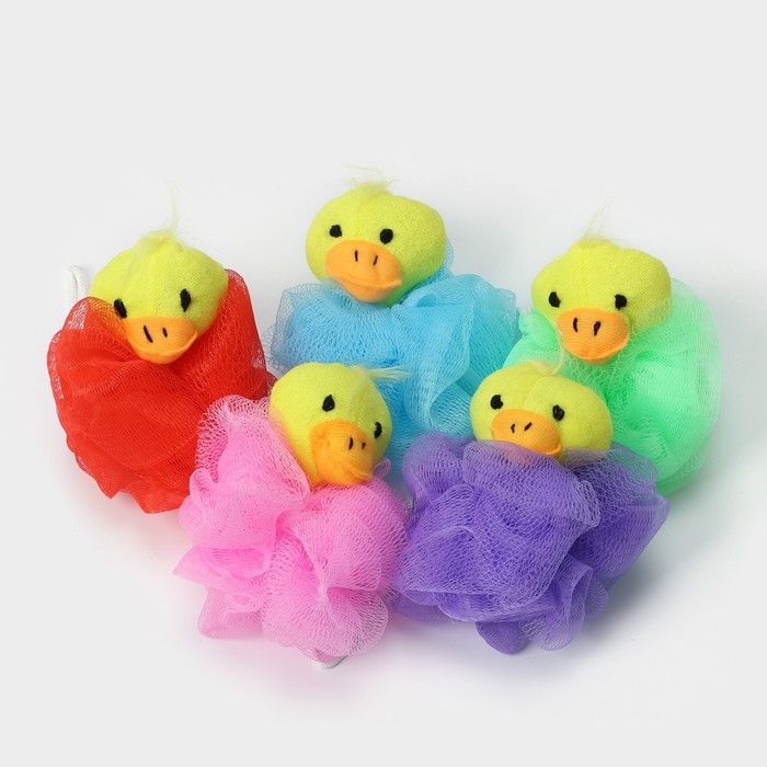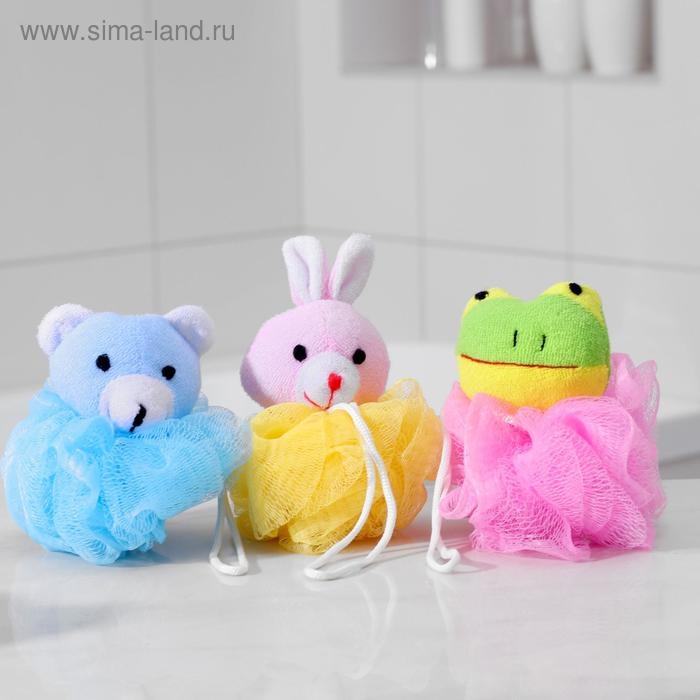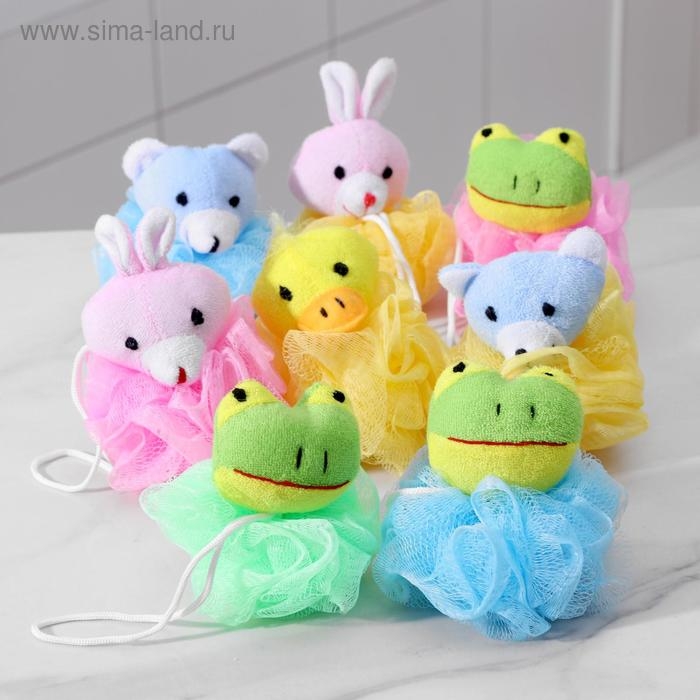 Мочалка детская с мягкой игрушкой Доляна «Зверята», 20 гр, игрушка и цвет МИКС