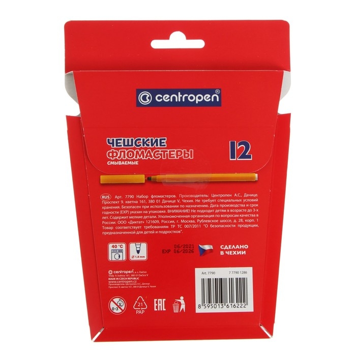 Фломастеры 12 цветов Centropen 7790 "Пингвины" 1.8 мм, линия 1.0 мм