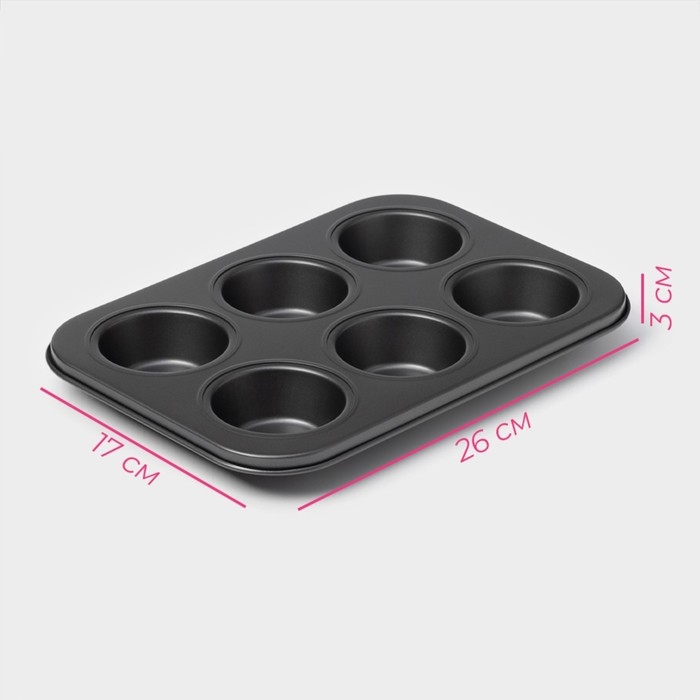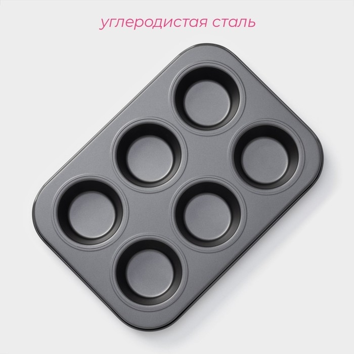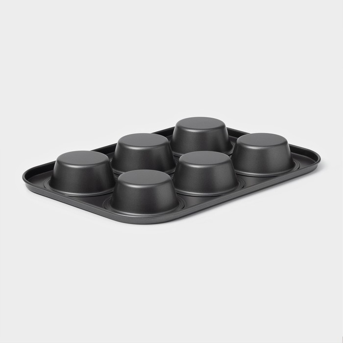 Форма для выпечки Доляна «Жаклин», 26×17×3 см, 6 ячеек, антипригарное покрытие, цвет чёрный