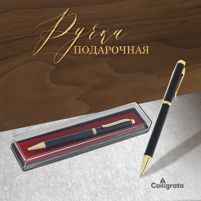 Ручка подарочная перьевая Calligrata, в кожзам футляре ПБ IM, корпус черный с золотом