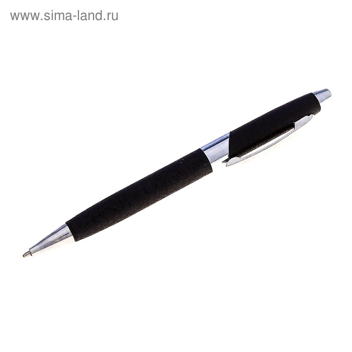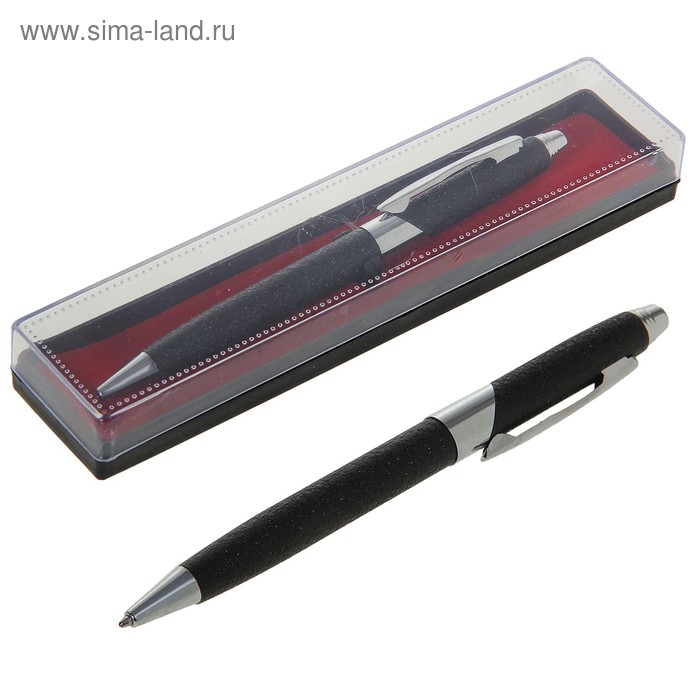 Ручка шариковая, подарочная, в пластиковом футляре, поворотная, "Бизнес", чёрная с серебристыми вставками