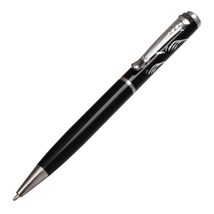 Ручка шариковая, подарочная, в пластиковом футляре, поворотная, "Бизнес", чёрная с серебристыми вставками