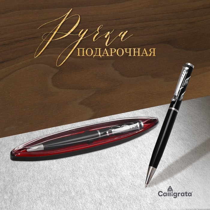 Ручка подарочная перьевая Calligrata, в кожзам футляре ПБ IM, корпус черный с золотом