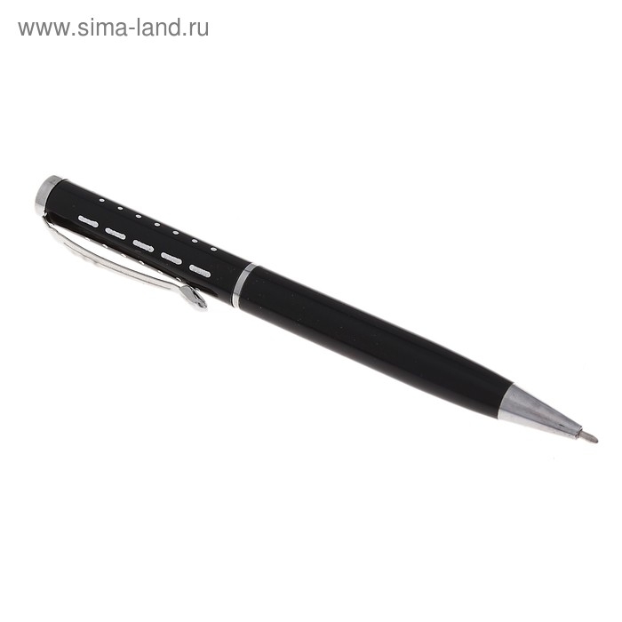 Ручка подарочная, шариковая "Пунктир" в пластиковом футляре, поворотная, чёрная с серебристыми вставками
