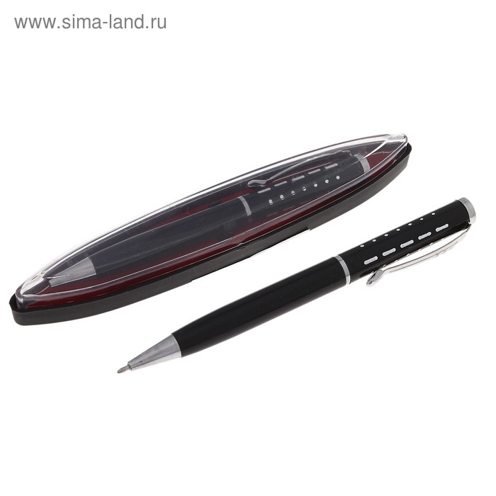 Ручка шариковая, подарочная, в пластиковом футляре, поворотная, "Бизнес", чёрная с серебристыми вставками