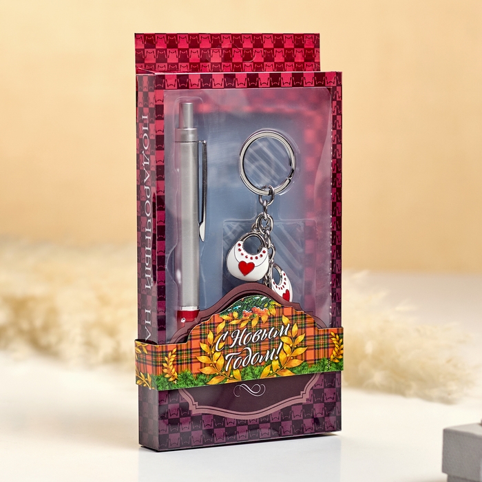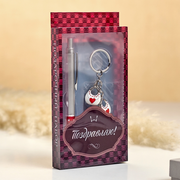 Набор подарочный 2в1 (ручка, брелок сердечки)