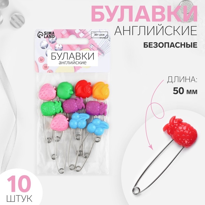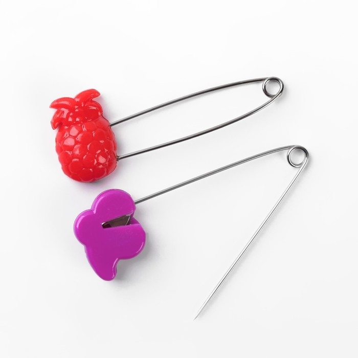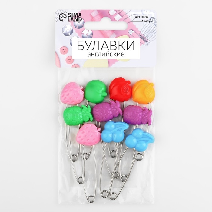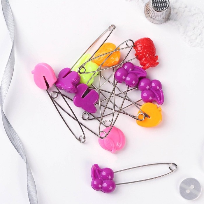 Булавки английские «Фрукты», безопасные, 50 мм, 10 шт, цвет МИКС