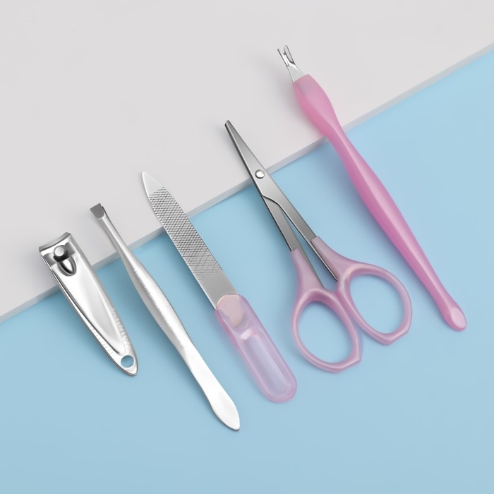 Набор маникюрный, 5 предметов, на блистере, цвет МИКС
