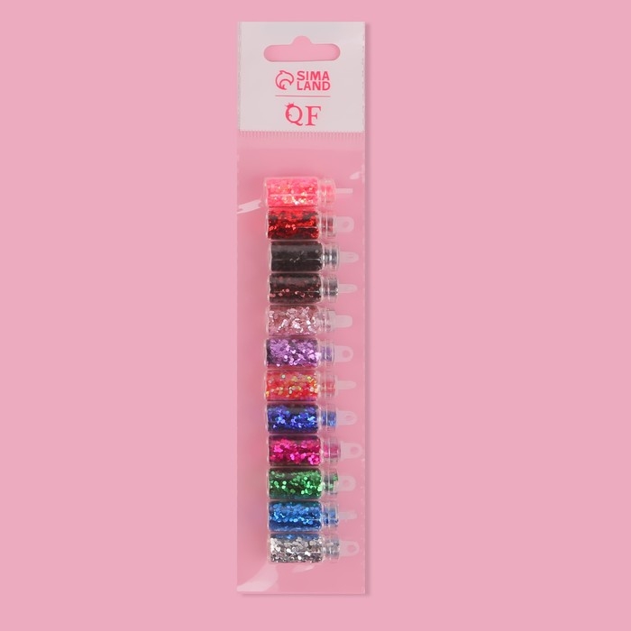 Блёстки для декора ногтей, средние, набор 12 бутылочек, разноцветные