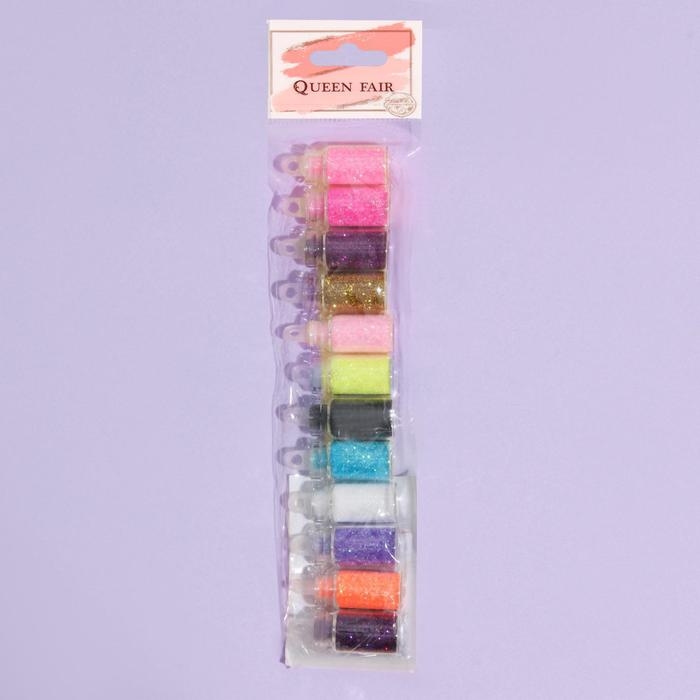Блёстки для декора ногтей, мелкие, набор 12 бутылочек, разноцветные