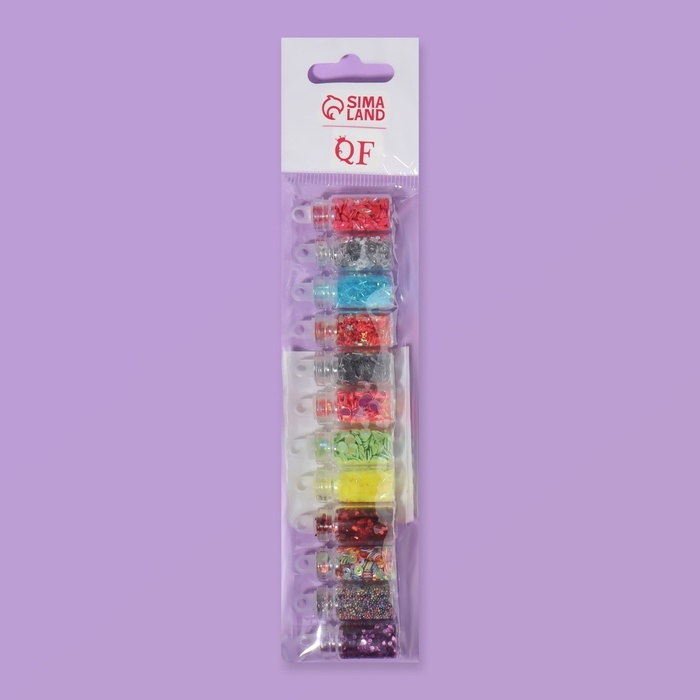 Набор для декора ногтей, 12 бутылочек, разноцветные