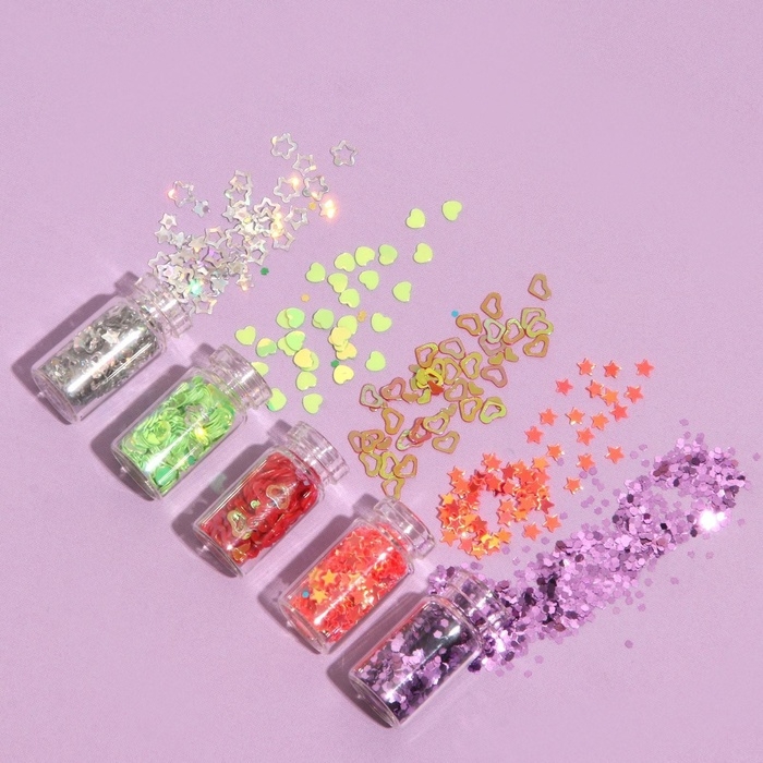 Набор блесток для декора, мелкий помол, цвет алый, 6 штук