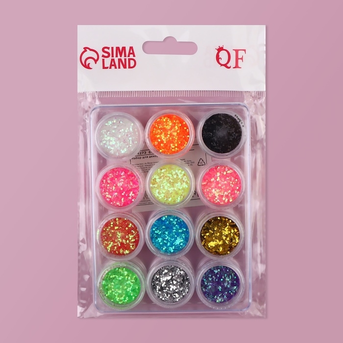 Блёстки для декора ногтей, мелкие, набор 12 бутылочек, разноцветные