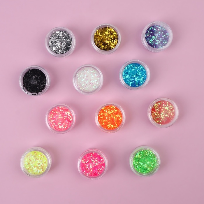 Блёстки для декора ногтей, средние, набор 12 бутылочек, разноцветные