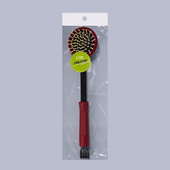 Массажёр-чесалка «Отдых», двусторонний, универсальный, 35 × 6 × 8 см, цвет красный/чёрный