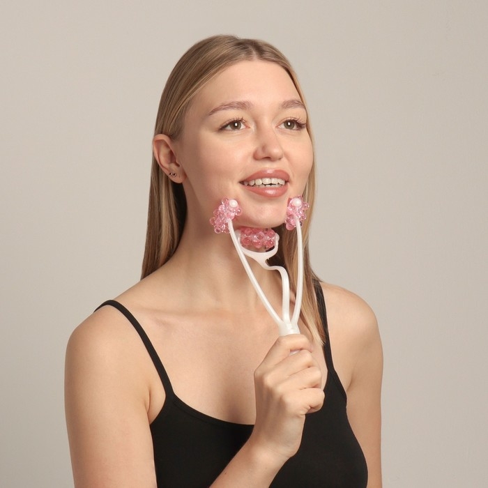 Массажёр для лица и шеи «Трезубец», 23 × 5 × 2,5 см, цвет белый/розовый