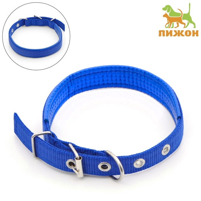 Ошейник "Комфорт" комбинированный (полиэстер, искусств. кожа), 45 х 2 см, ОШ 30-39 см, синий