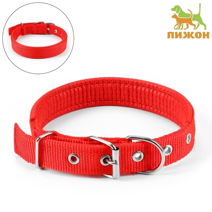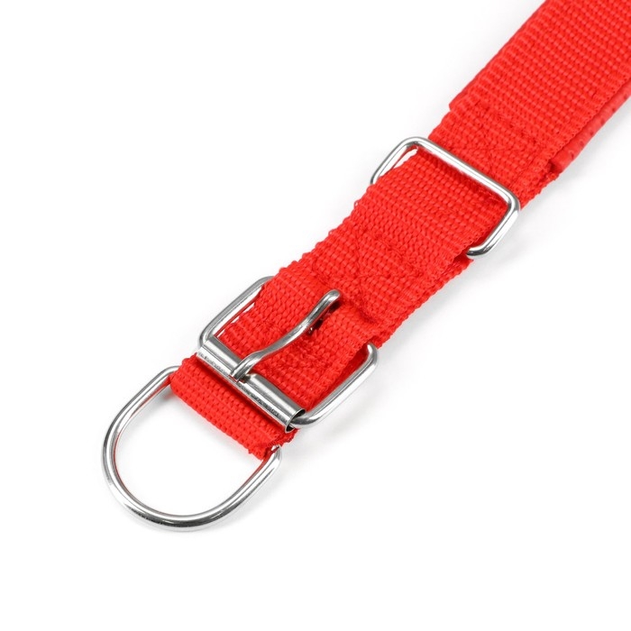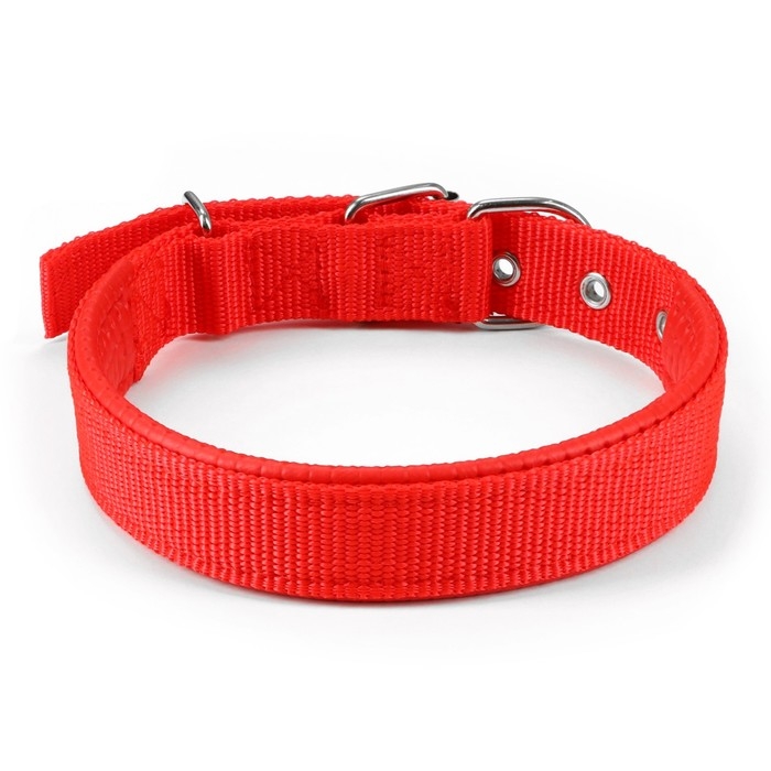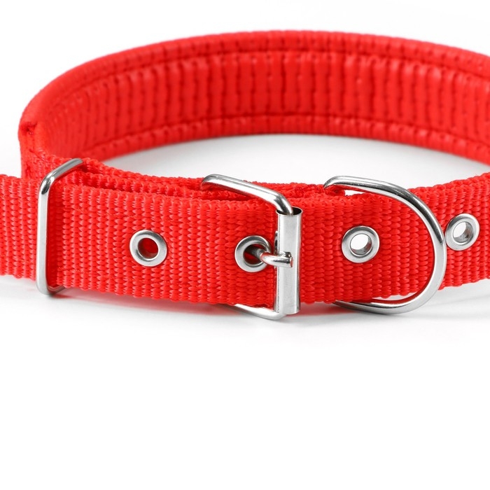 Ошейник "Комфорт" комбинированный (полиэстер, искусственная кожа), 58 х 3 см, ОШ 45-52 см, красный 6