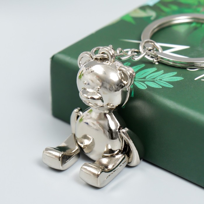 Брелок металл "Мишка" серебро, лапы двигаются 2,3х1х4 см