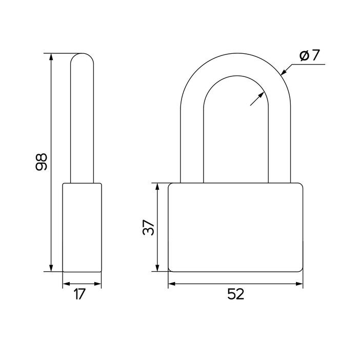 Замок навесной, тип 7, 52х95 мм, 3 ключа