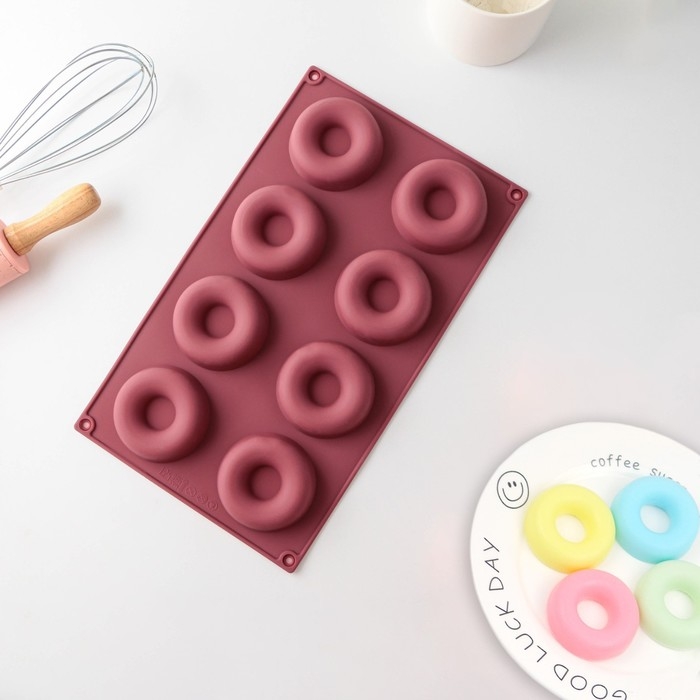 Форма для выпечки Доляна «Сладости. Пончики», 29×17 см, 8 ячеек (d=6 см), цвет МИКС