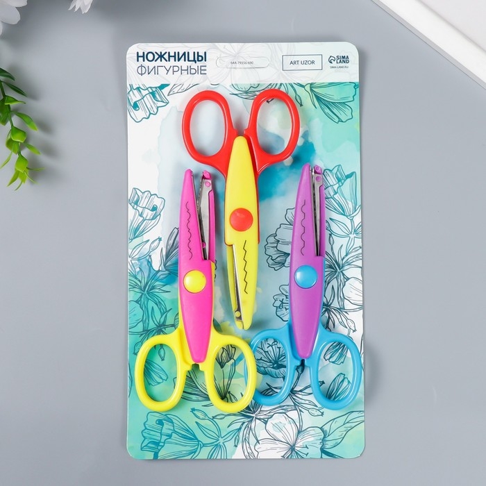 Ножницы рельефные "Цветик" (набор 3 шт) МИКС 13 см