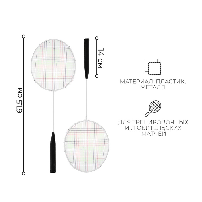 Набор для бадминтона ONLYTOP: 2 ракетки, волан, в сетке, цвета МИКС